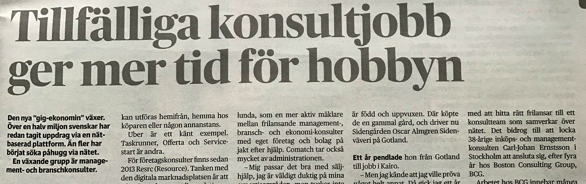 Den nya ”gig-ekonomin” växer. Över en halv miljon svenskar har redan tagit uppdrag via en nätbaserad plattform. Än fler har börjat söka påhugg via nätet. En växande grupp är management- och branschkonsulter.
